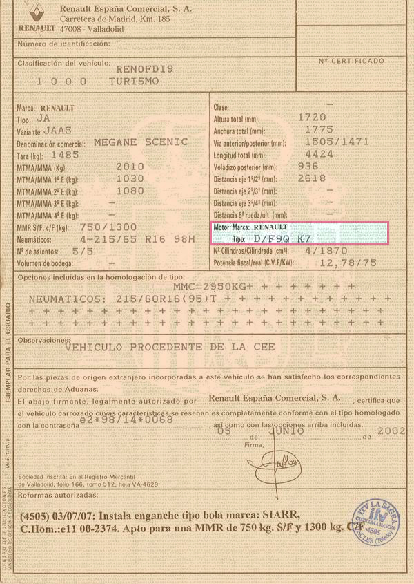 En la ficha técnica de nuestro vehículo podemos ver el tipo de motor, especificado en ‘Motor. Marca: / Tipo:’.